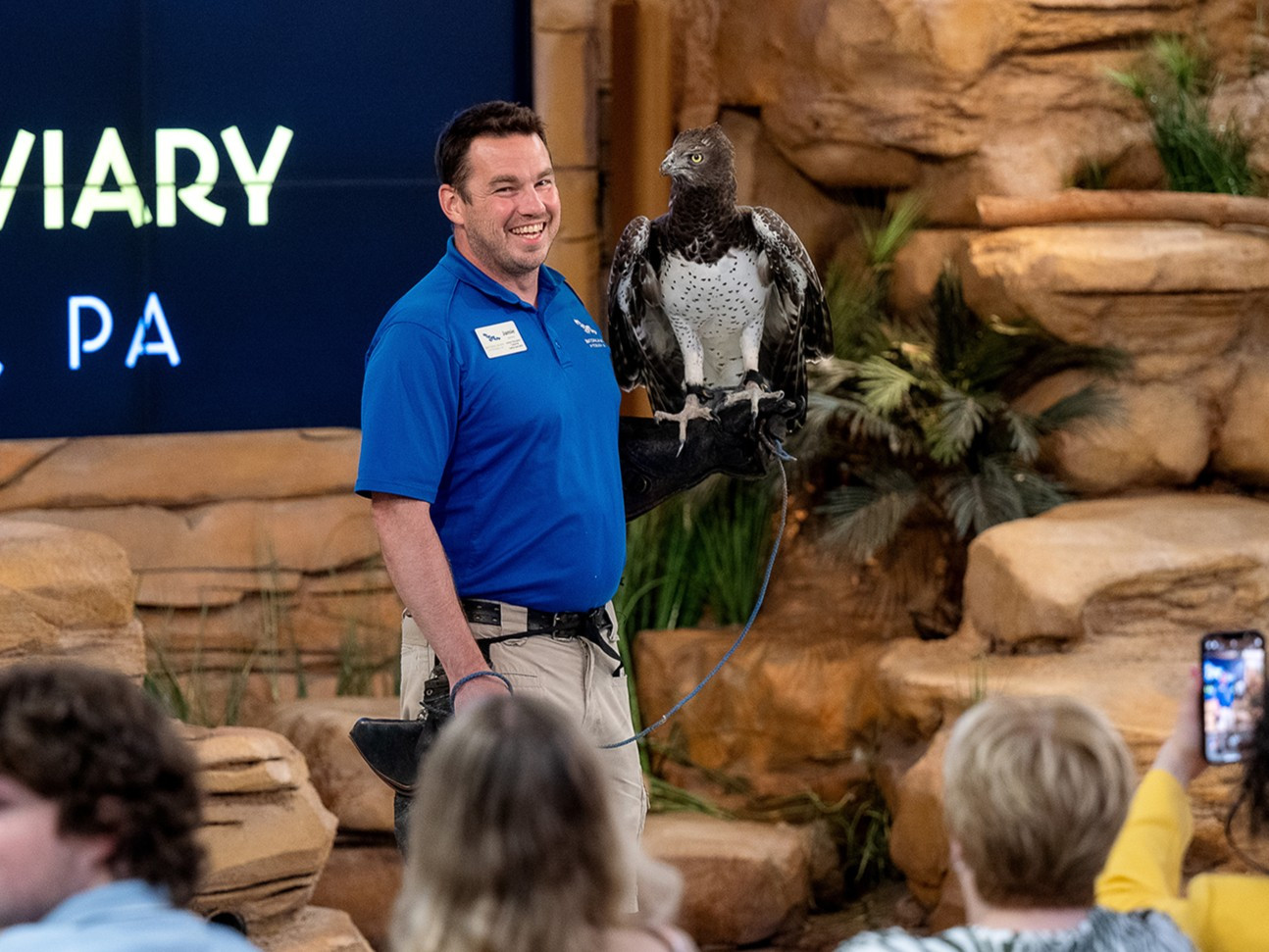 The National Aviary offers a variety of Daily Activities for an optimum guest experience. Visit one of our habitats for an insightful feeding, watch birds soar over the audience during a live bird show, or get up close with your favorite species during an Animal Encounter! Members visit for free and receive discounts on Animal Encounters, the Gift Shop, and our live, immersive bird shows!